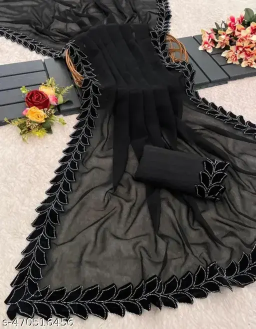 Step into effortless elegance with this Georgette Saree, designed for both casual and festive occasions. Crafted from lightweight georgette fabric, it drapes beautifully and offers a soft, flowing silhouette. The solid design makes it a timeless classic, while the art silk blouse piece, featuring a pattern inspired by the saree border, adds a subtle touch of sophistication.
