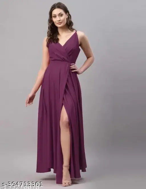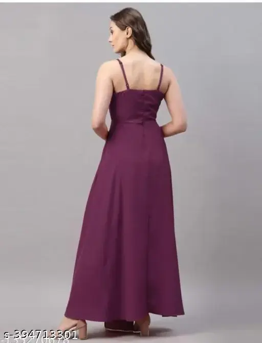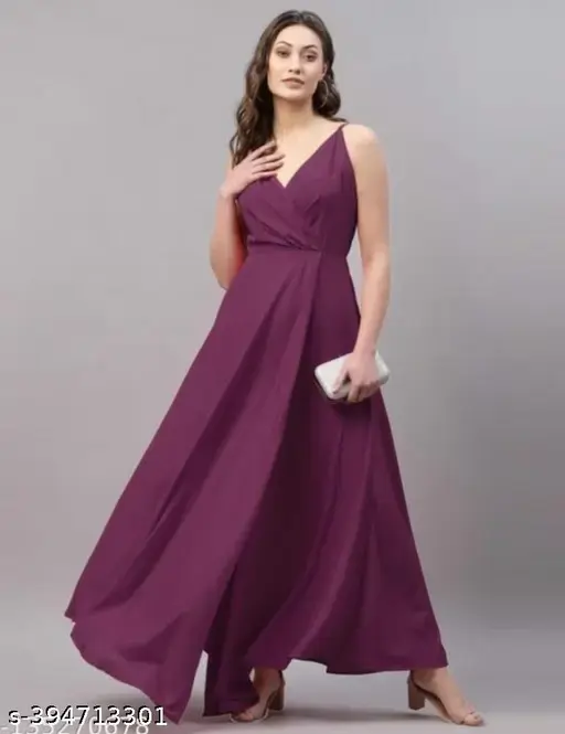 Stay comfortable and stylish with this elegant Chamunda Fashion sleeveless dress, designed for a graceful and modern look. Made from lightweight crepe fabric, this dress feels soft on the skin and drapes beautifully. The solid pattern gives it a classy and timeless appearance, making it suitable for daily wear, casual outings, festive gatherings, or evening occasions. Its long length adds a touch of elegance while keeping the look simple and effortless.