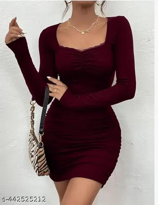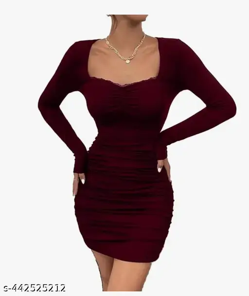 Turn heads at every party with this trendy bodycon dress, designed to give you a sleek and confident look. Crafted from premium Lycra fabric, this dress offers a comfortable stretch that hugs your curves perfectly while allowing easy movement.