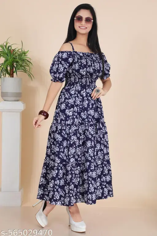 Bring effortless grace to your wardrobe with this Floral Printed Fit and Flare Maxi Dress, designed for women who love comfort wrapped in style. Made from a soft cotton blend fabric, this maxi dress features a beautifully smocked bodice that hugs the body comfortably while the flared skirt flows with every step. The charming floral print and short puff sleeves add a feminine, refreshing touch, making it perfect for sunny days and joyful occasions. Whether you’re heading to a birthday party, brunch with friends, a vacation getaway, or a festive celebration, this dress delivers elegance at an affordable price.