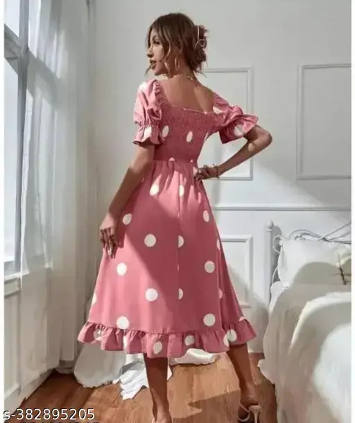 Fancy Retro Women Dresses are designed to give you a stylish vintage look with modern comfort. Made from soft and lightweight crepe fabric, this dress features a beautiful printed pattern that adds charm and elegance. The short sleeves and flattering length make it perfect for casual outings, parties, and daily wear. Easy to style and comfortable all day long, this dress is a must-have addition to your wardrobe.